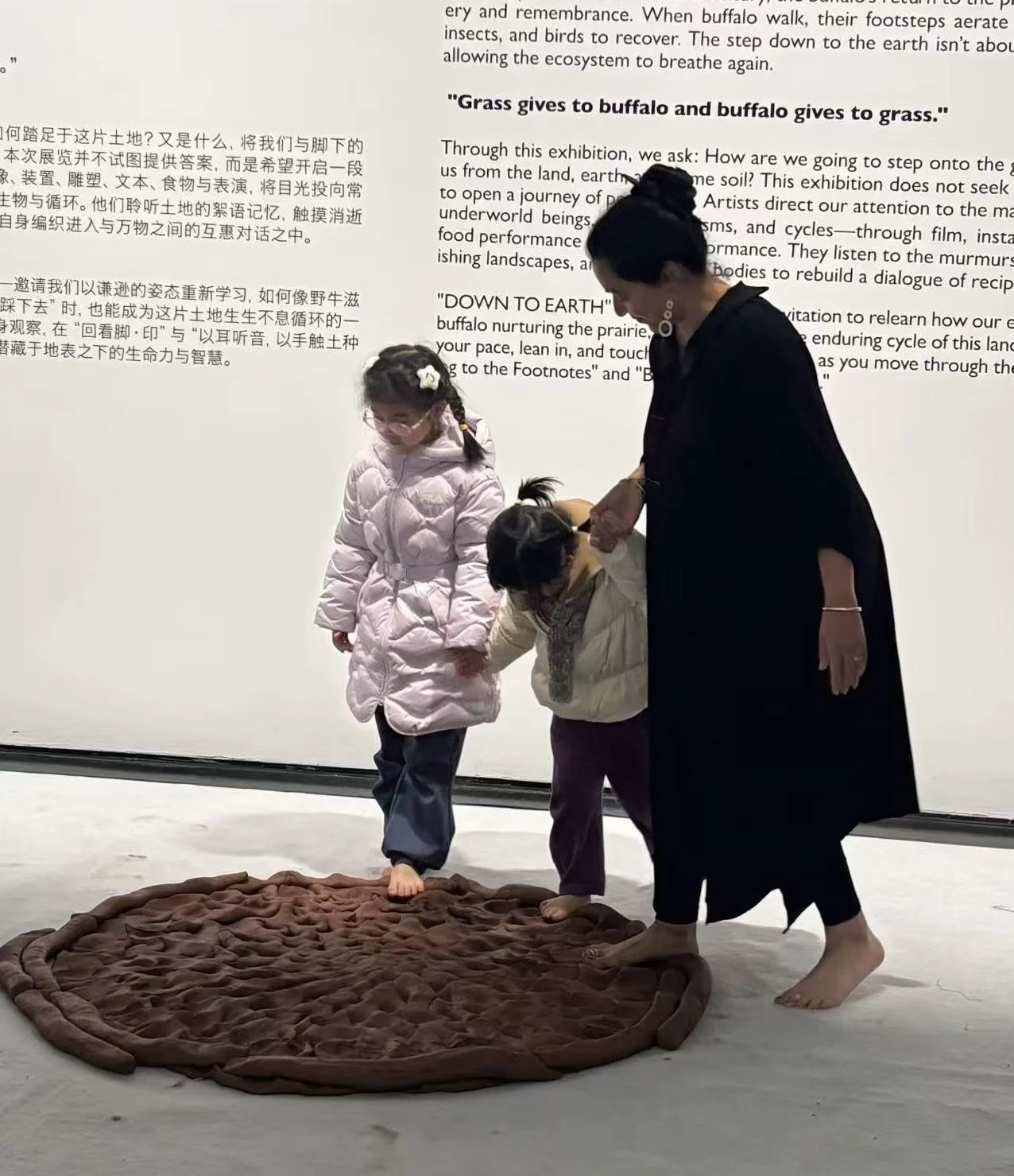 Ashwini Bhat’s site-specific installation “Being, Longing…” at the Palo Alto Art Center, includes a newly created large-scale glazed ceramic mandala (Collective Earth) created by public participation in a performance (Earth Under Our Feet) during the 2025 community festival Montalvo Funk at Montalvo Arts Center.